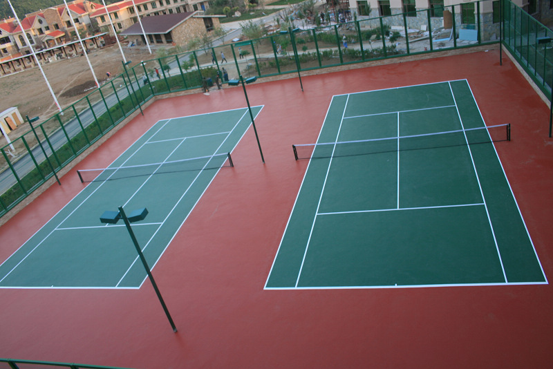 這是一種現(xiàn)場澆鋪用刮板制作在瀝青混凝土上或鋼盤混凝土結(jié)構(gòu)地面上的型材,其工藝主要分為找平結(jié)合層、加強(qiáng)層、耐磨層等多層做法,還有含膠粒的多層做法這種面層材料及工藝的優(yōu)點是平整度高、表面硬度高、耐磨、抗曬、色澤鮮艷、使用壽命長便于管理和維修。這種面層材質(zhì)穩(wěn)定的網(wǎng)球場近年來已開始在**各地普遍采用,管它球速稍快,較之其它類型球場,球的彈跳平衡,球員場上跑動舒服,是一種既可供娛樂打球也可用做正規(guī)比賽的**次網(wǎng)球場地
